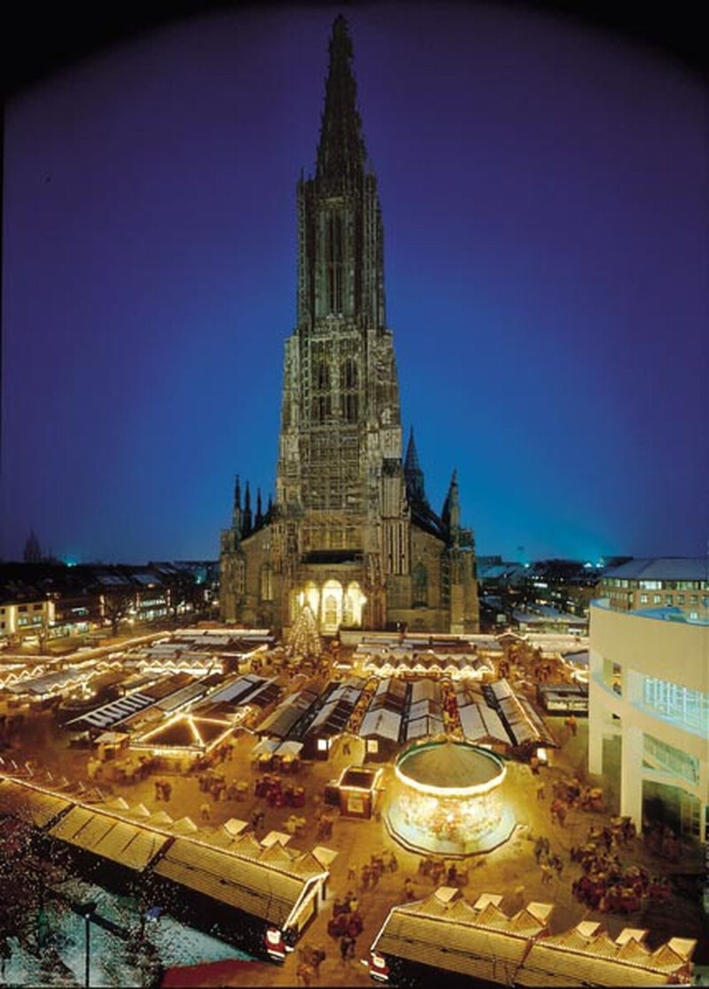 Nach dem Frühstück geht es nach Ulm. Besuchen Sie heute Ulm: "In Ulm, um Ulm und um Ulm herum" - dieser Zungenbrecher steht für die Kur- und Fachwerkstadt. Der Ulmer Weihnachtsmarkt zählt zu den bekanntesten im süddeutschen Raum und begrüßt alljährlich auch immer wieder Gäste aus der Schweiz, Österreich und Italien. Er befindet sich auf dem Münsterplatz, direkt vor dem höchsten Kirchturm der Welt - eine kleine 'Stadt in der Stadt'. Vor dem Hauptportal des Ulmer Münsters wird während der Marktzeit täglich vorweihnachtliche Musik und Gesang geboten. Zahlreiche Buden mit kulinarischen