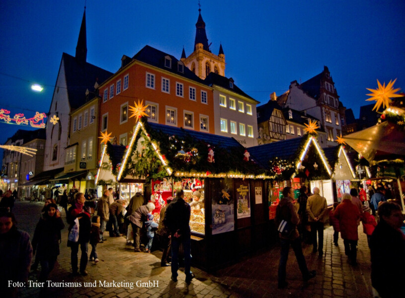 Trier ist weltbekannt für seine zahlreichen imposanten Bauten wie Porta Nigra, Dom und Liebfrauenkirche – und im Advent sorgt der Weihnachtsmarkt auf dem mittelalterlichen Hauptmarkt vor dem Dom für Romantik pur! Lernen Sie auch den einzigartigen Weihnachtsmarkt in Traben-Trarbach kennen – unterirdisch in den ehemaligen Weinkellern der Stadt und wer möchte, startet in Luxemburg zur Erkundungs- und Shoppingtour!