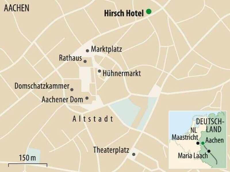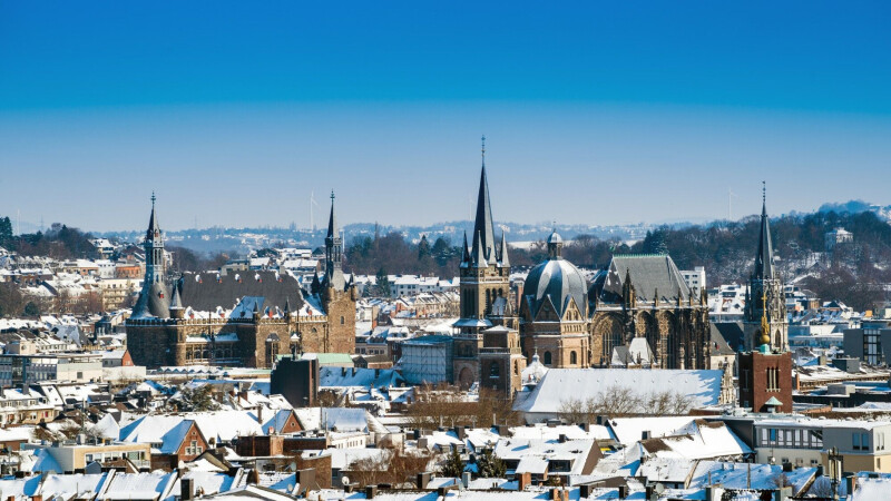 Westlichste deutsche Stadt. Stadt der Printen und des Pferdesports. In den heißen Quellen badeten schon die Römer – und doch dreht sich alles um den berühmten Karl! 814 starb Karl der Große in Aachen. Mehr als 20 Jahre hatte der Frankenherrscher in seiner Lieblingspfalz residiert. Sein Dom gehört noch heute zu den faszinierendsten Bauwerken der Welt. Der Weihnachtsmarkt zu seinen Füßen verleiht der Stadt der Printen im Advent festlichen Glanz.