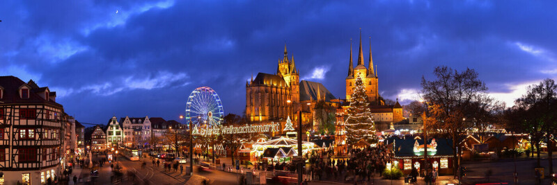 Tag 1: Anreise. Heute starten Sie Richtung Thüringen. In Weimar erwartet Sie ein stimmungsvoller Weihnachtsmarkt vor historischer Kulisse. Zwischen kleinen Holzhäuschen, liebevoll gestalteten Ständen und dem Duft gebrannter Mandeln bleibt Zeit zum Flanieren und Genießen. Am Nachmittag geht es weiter nach Erfurt. Nach dem Check-in im zentral gelegenen H2 Hotel können Sie ganz entspannt den festlich beleuchteten Domplatz erkunden. Der Erfurter Weihnachtsmarkt zählt zu den schönsten Deutschlands – lassen Sie den Tag bei einem heißen Punsch gemütlich ausklingen.