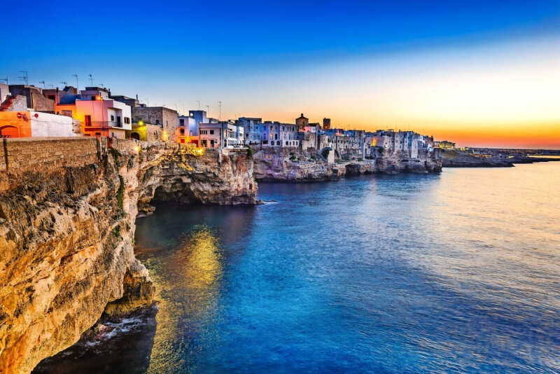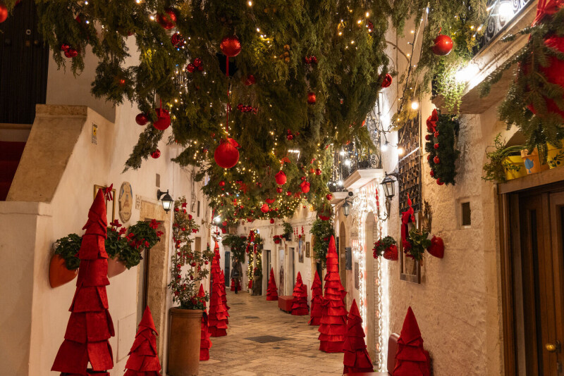 Tag 3: Bari und Polignano a Mare. Heute lernen Sie bei einer Stadtführung die wichtigsten Sehenswürdigkeiten der Hauptstadt Apuliens, Bari, kennen. Am Nachmittag geht es weiter nach Polignano a Mare, das spektakulär auf Klippen thront. Auch hier sind die engen Gassen der Altstadt in der Weihnachtszeit überschwenglich dekoriert und ein Besuch zur Dämmerung ein Muss.