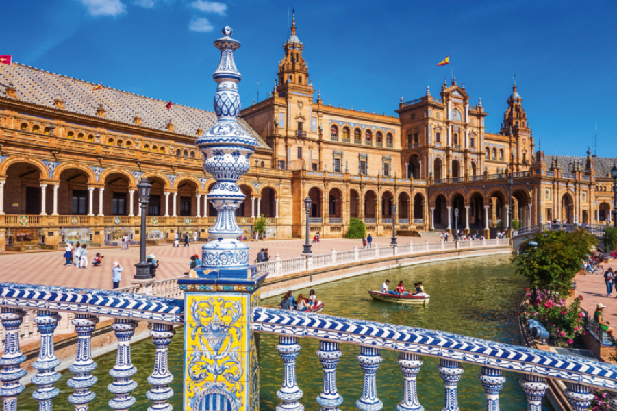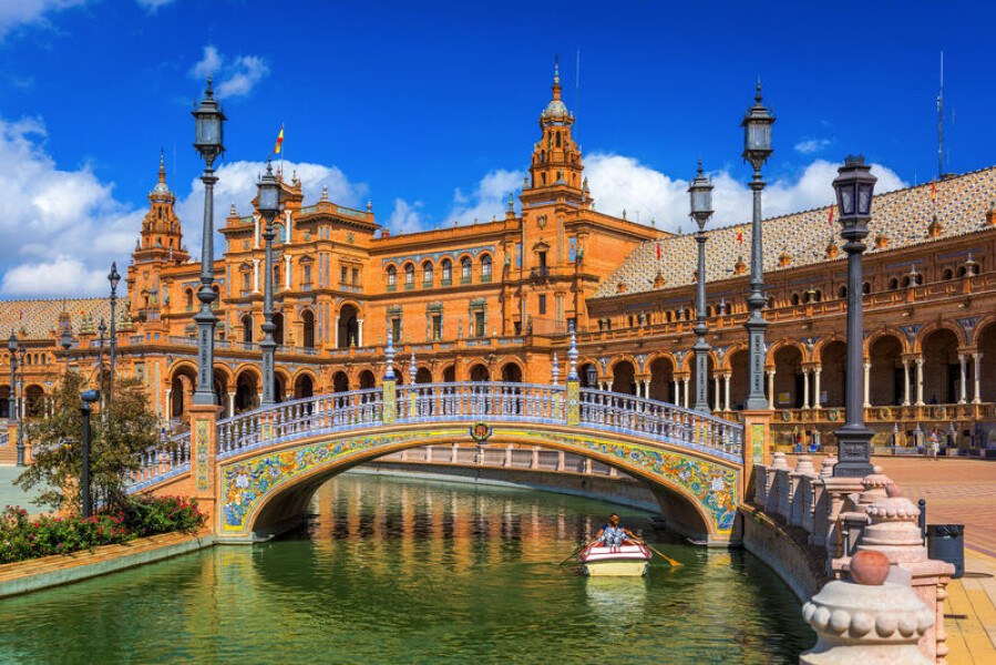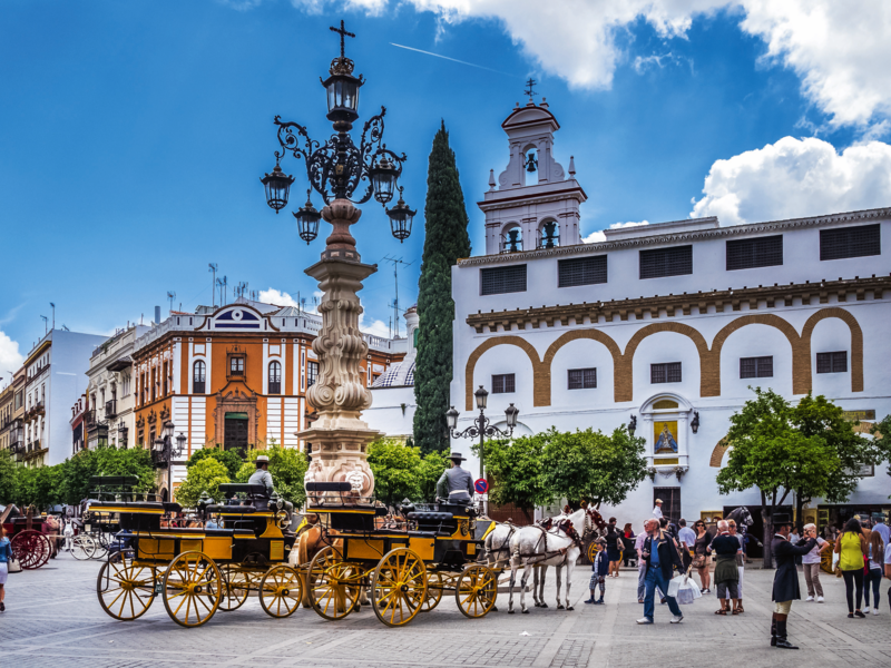 Fahrt in die andalusische Stadt Sevilla am Fluss Guadalquivir. Das Viertel Santa Cruz, die Plaza España, der Glockenturm Giralda der Kathedrale und das ehemalige Expo-Gelände werden Sie beeindrucken.