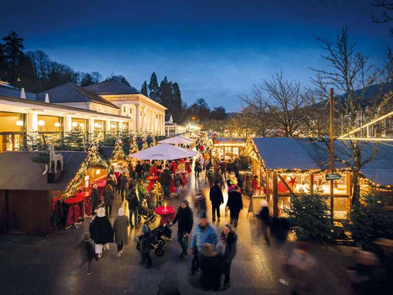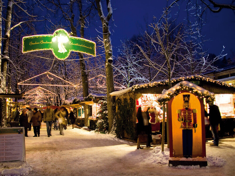 Im Winter erwartet Sie in Baden-Baden ein bezaubernder und traditioneller Christkindelsmarkt mit einer lebendige Krippe aus Streicheltieren, einer prächtig illustrierten Märchenstraße und einer Kirchenfenster-Allee mit überdimensional großen, hinterleuchteten Bildern.