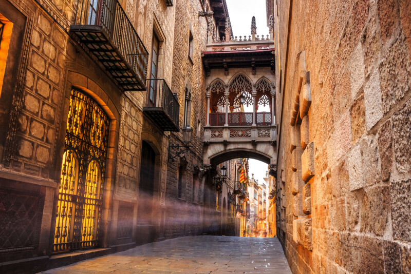Die Hauptstadt Kataloniens ist ordentlich, fast symmetrisch angelegt. In der Nähe des Hafens, Ursache des Reichtums und der Weltoffenheit Barcelonas, liegt der “Barrio Gotico”, die gotische Altstadt. Sie wird durchquert von den “Ramblas”, eine prachtvolle Allee, verschönt durch malerische Blumenstände und Terrassencafés unter schattigen Bäumen. Hier quirlt nur so das Leben. Einige Meter von den “Ramblas” entfernt befindet sich ein mittelalterliches enges Straßenlabyrinth mit Palästen, romanischen Resten, Kirchen, einer riesigen gotischen Kathedrale und verwunschenen, ruhigen Plätzen: Das romantische Barcelona, eine intakt erhaltene mittelalterliche Atmosphäre im Herzen der Stadt.