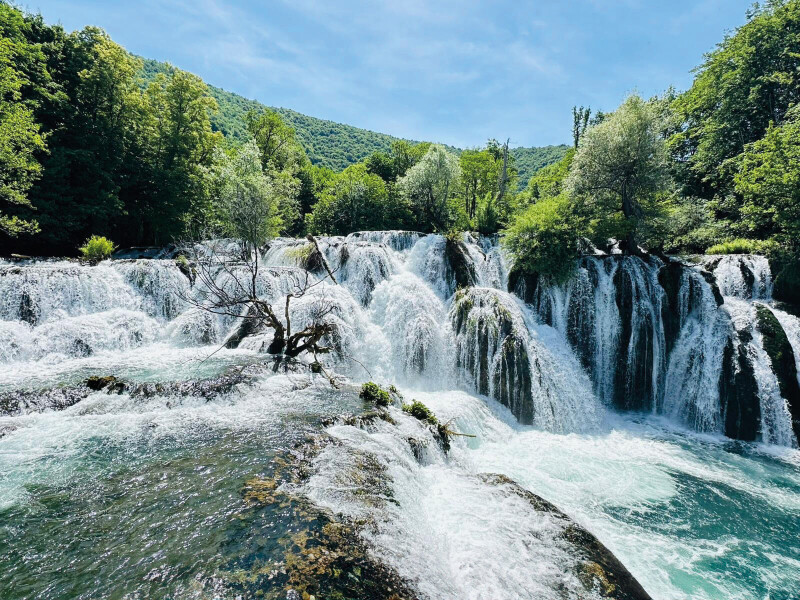 Fahrt zu den Wasserfällen von Martin Brod. Kleine Wanderung mit Besuch eines Klosters und weiter zum Panorama-Aussichtspunkt. Rückfahrt mit Fotostopp am Fuß der Burg Ostrovica und Besuch des großen Wasserfalls Štrbački Buk (inkl. Transfer zum Wasserfall mit örtlichem Kleinbus), ein Highlight im Nationalpark Una.