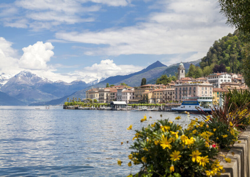 Anreise nach Tremezzo am Comer See. Eingebettet in eine alpine Berglandschaft mit mächtigen Felsen und grünen Tälern schlängelt sich der schmale Comer See mit seiner markanten Y-Form. Vor dem Abendessen bleibt noch Zeit für einen Bummel entlang der Seepromenade.