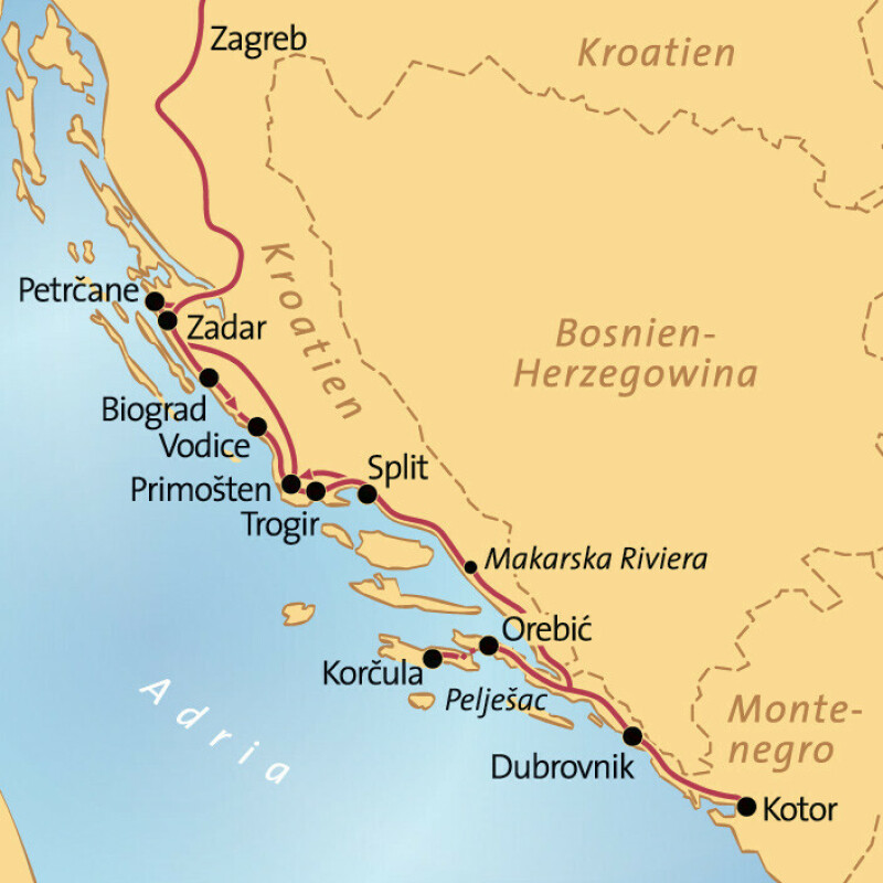Fahrt über die Tauernautobahn und Zagreb nach Biograd, wo Sie Ihr Hotel beziehen. Abendessen und Übernachtung.