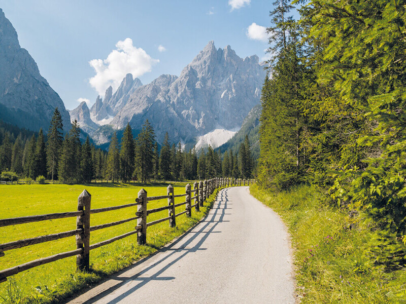 Auf unseren E-Bikes erleben wir die gewaltige Kulisse der Sextener Dolomiten hautnah – vorbei an den ehrfurchtgebietenden Drei Zinnen, dem glitzernden Misurinasee und dem magisch gelegenen Pragser Wildsee, wo sich Himmel und Berge im Wasser spiegeln. Mit Rückenwind und purer Freude im Herzen durchqueren wir das sonnenverwöhnte Pustertal, entdecken lebendige Orte wie Bruneck und Lienz, spüren im Ahrntal bei Sand in Taufers die Ursprünglichkeit der Berge und lassen uns schließlich vom mediterranen Charme Bozens im Etschtal verzaubern.