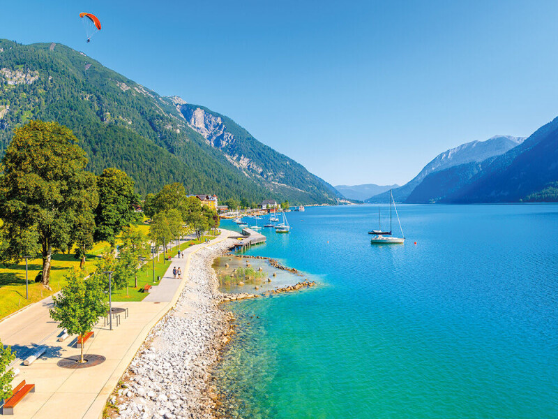 Die heutige Radtour startet direkt am Hotel. Wir fahren zunächst auf idyllischem Weg bis zum Ufer des Achensees. Entlang des Sees passieren wir den Yachtclub und den Leuchtturm und erreichen die südliche Seespitze. Hier befindet sich die Haltestelle der nostalgischen Dampflok, der Achenseebahn. Nachdem wir Pertisau verlassen haben, radeln wir in die Karwendeltäler bis zum Alpen-Gasthof Gramaialm, eingebettet in traumhafter Kulisse. Aufenthalt. Rückfahrt mit dem Rad auf gleicher Strecke mit Möglichkeit zur Rast im Atoll, einer großen Freizeitanlage direkt am Achensee.