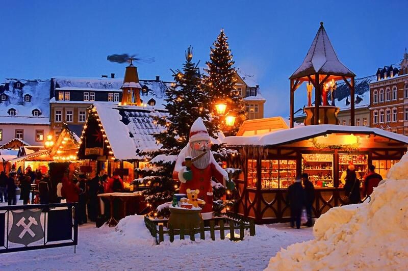 Erleben Sie das Erzgebirge zur Adventszeit und besuchen Sie die romantischen Weihnachtsmärkte in Erfurt, Seiffen und Annaberg-Bucholz und lassen Sie sich vom bekannten Dresdener Striezelmarkt verzaubern.