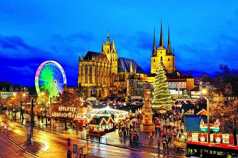 Heimreise mit Stopp in Erfurt. Bummeln Sie über den zauberhaften Weihnachtsmarkt. Rückkunft abends.