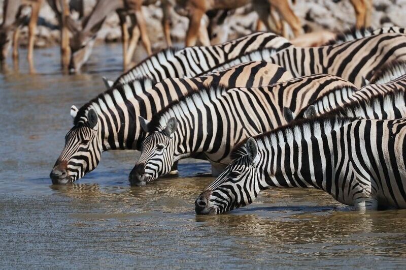 Heute unternehmen Sie am frühen Morgen eine Pirschfahrt in offenen Safari-Fahrzeugen durch den Etosha National Park und erleben die Wildnis „hautnah“. Nach der Rückkehr ins Hotel gemeinsames Frühstück. Anschließend setzen Sie die Pirschfahrt im Reisefahrzeug fort. Sie beobachten Elefanten beim Baden an der Wasserstelle, begeben sich auf Spurensuche nach Löwen und Geparden und fahren mitten durch riesige Zebra und Antilopenherden. Am Abend werden Sie zu einem Abendessen bei Sonnenuntergang erwartet.