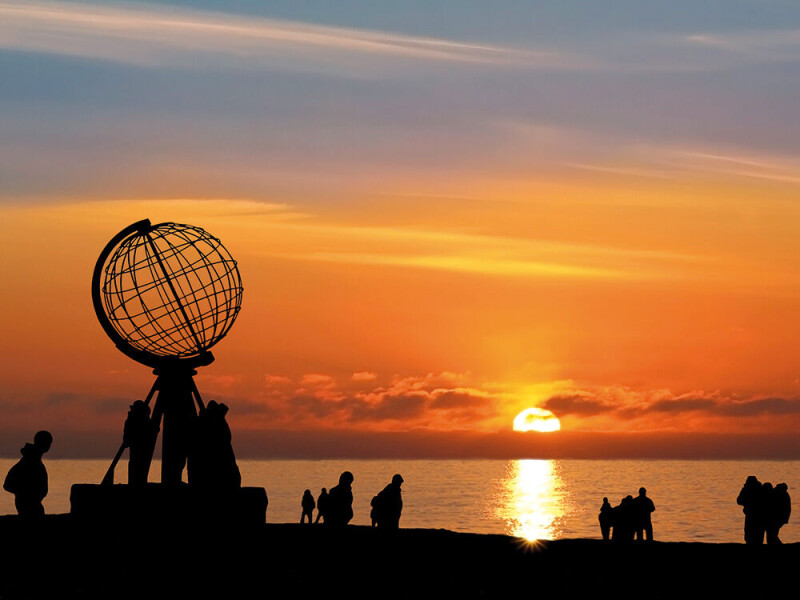 Weiterfahrt Richtung Norden, vorbei am Inarisee (Inarijärvi), an die finnisch-norwegische Grenze. Über Karasjok und Lakselv gelangen Sie nach Kåfjord. Hier durchfahren Sie den Nordkaptunnel nach Honningsvåg. Hotelbezug. Am späten Abend erwartet Sie ein grandioses Naturschauspiel. Sie starten zu einem Ausflug zur Nordkapklippe und erleben, schönes Wetter vorausgesetzt, die Mitternachtssonne. Zurück ins Hotel.
