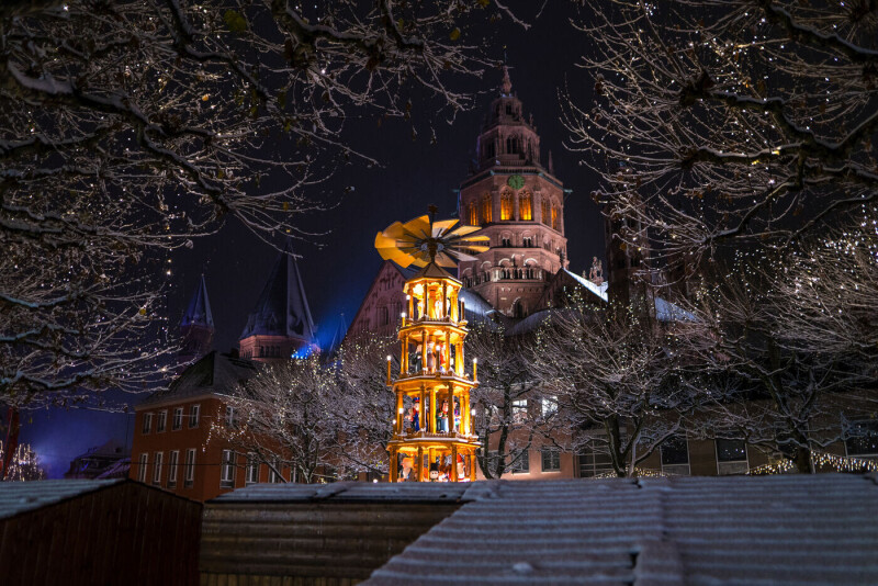 Tag 1: Anreise. Am Morgen beginnt Ihre Anreise in Richtung Rheingau. Heute steht eine Stadtführung in Mainz auf Ihrem Programm. Zwischen Dom und Schloss erstrahlt Mainz in festlichem Glanz: Der Historische Weihnachtsmarkt begeistert mit liebevoller Kulisse, Krippe mit lebensgroßen Figuren, Kinderkarussell und stimmungsvoller Musik am großen Adventskranz. Rund um Schillerplatz, Hopfengarten und im romantischen Schloss-Innenhof setzt die „Mainzer WinterZeit“ weitere Highlights. Im Anschluss geht es weiter nach Wiesbaden in Ihr Hotel.