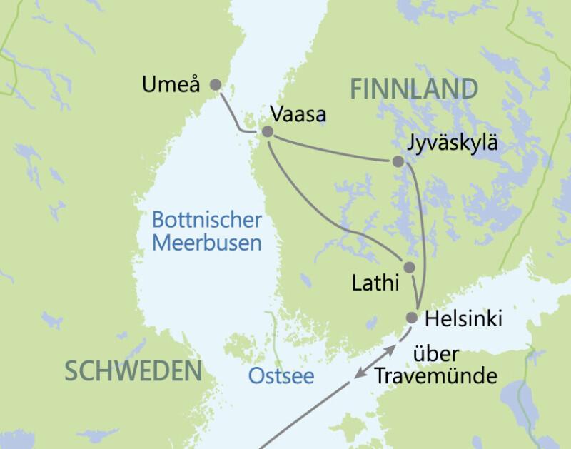 Sie verlassen Vaasa und machen sich auf den Weg nach Helsinki. Unterwegs sehen Sie noch die Skisprunganlage von Lathi. In Helsinki angekommen erwartet Sie eine 2-stündige Stadtrundfahrt, bei der Sie die Sehenswürdigkeiten der Stadt kennen lernen. Im Anschluss geht es wieder auf das Schiff der Finnlines und Sie verlassen um 17:00 Uhr den Hafen. Genießen Sie ein Abendbuffet an Bord und lassen Sie den Abend an der Bar ausklingen!