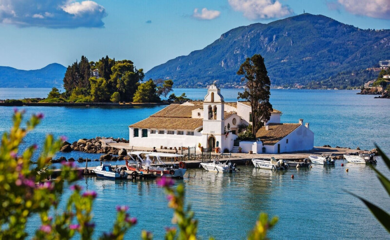 Tag 4: KANONI, MON REPOS, ACHILLEION. Ihr heutiger Tag beginnt im idyllischen Ort Kassiopi, der mit einem herrlichen Ausblick auf die Berge des griechischen Festlands und Albaniens begeistert. Entlang der Nordostküste fahren Sie bis zur Halbinsel Kanoni und genießen einen atemberaubenden Blick auf das malerische Inselchen Pontikonissi, dem Wahrzeichen Korfus. Über einen kleinen Steg gelangen Sie zum charmanten Kloster Vlacherna – einem beliebten Fotomotiv inmitten der sanften Meereswellen. Anschließend besuchen Sie die Villa Mon Repos, einst Sommerhaus der königlichen Familie. Ganz in der Nähe sehen Sie einen sehr gut erhaltenen dorischen Tempel und die Ruinen der Basilika von Paleopolis, der ältesten Kirche der Insel. Bummeln Sie noch etwas durch die belebten Straßen der Altstadt von Korfu-Stadt. Den krönenden Abschluss bildet die Besichtigung des Achilleion, der prachtvollen ehemaligen Sommerresidenz von Kaiserin Sissi und Kaiser Wilhelm II., die mit ihrer eleganten Architektur und geschichtsträchtigen Atmosphäre begeistert.