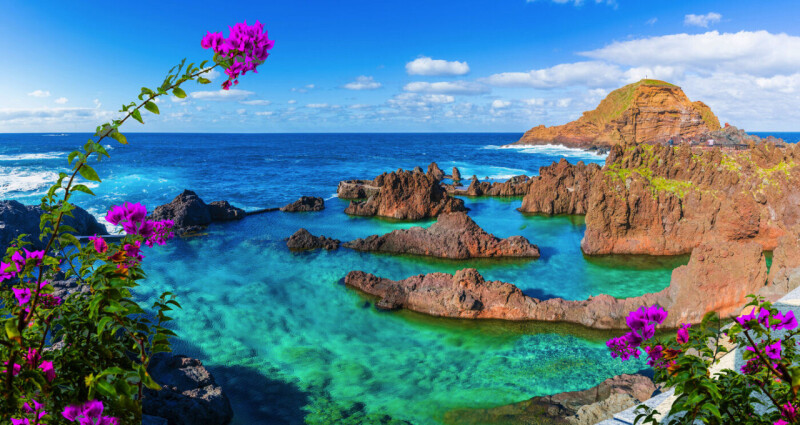 Tag 2: DER NORDWESTEN MADEIRAS. Nach Ihrem Frühstück fahren Sie mit Ihrer Reiseleitung entlang der Südküste zum Cabo Girão, der höchsten Steilklippe Europas mit fantastischem Ausblick auf Funchal. Weiter nach Ribeira Brava, dem Zentrum des Westens. Über die Hochebene Paúl da Serra (1.400 m) gelangen Sie nach Porto Moniz mit seinen natürlichen Meeresschwimmbecken. Anschließend führt die Fahrt Sie weiter entlang der Nordwestküste bis São Vicente, das mehrfach für seine gelungene Restaurierung ausgezeichnet wurde. Rückfahrt in Ihr Hotel und Abendessen.