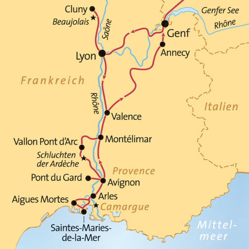 Sie besuchen die Schluchten der Ardèche und fahren bis zum Mittelmeer!