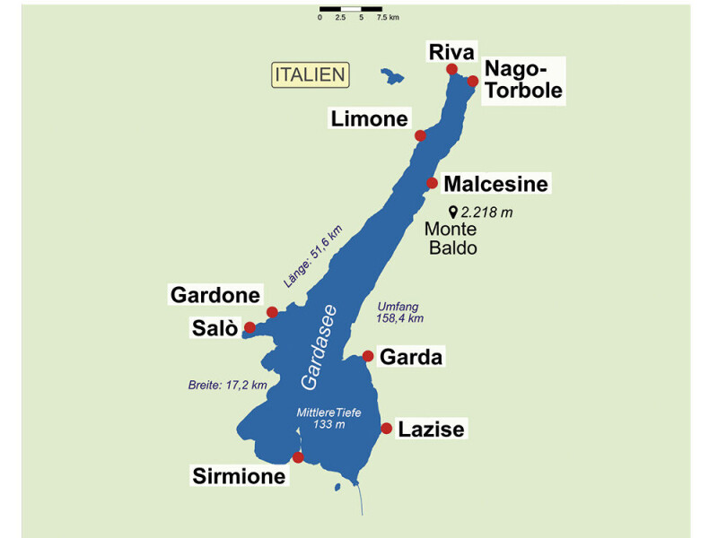 Der wunderschöne Gardasee ist der größte und beliebteste See Italiens. Er bietet vielseitige Möglichkeiten für Ausflüge am See und ins Umland. Ein Abstecher in die bekannte Metropole Verona lohnt sich allemal und der schöne Ferienort Salò lädt zur Erholung ein.