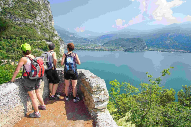 Die heutige Tour beginnt in Torbole und führt entlang der Marmitte dei Giganti, einer geologischen Felsformation, zum Castagneto, in dem mächtige Kastanienbäume wachsen und weiter zu den Schützengräben führt. Das Gebiet rund um den Monte Corno lag während des Ersten Weltkriegs genau auf der Frontlinie des österreichischen Heeres: Teile der Schützengräben und Manufakte wurden von den hiesigen Vereinen wieder zugänglich gemacht. Die Route zeigt einige der Schmuckstücke des Garda und bietet auf jedem Schritt einen wunderbaren Ausblick auf den See. Der Rückweg erfolgt dann über die alte Straße welche unterhalb der Rocca zurück nach Torbole führt.