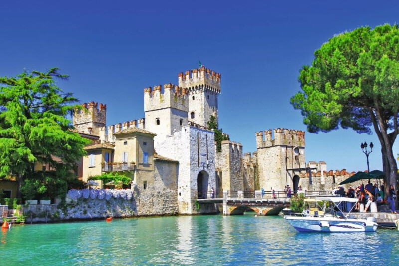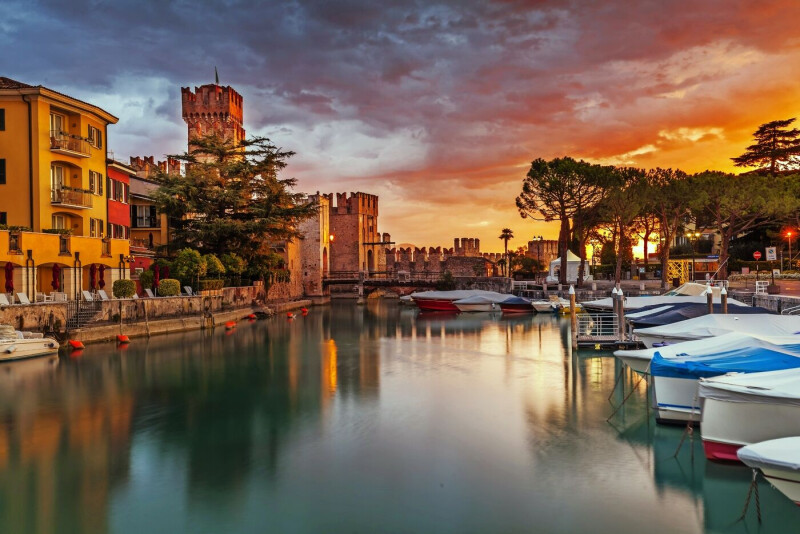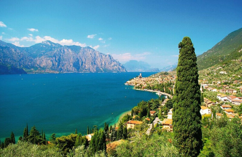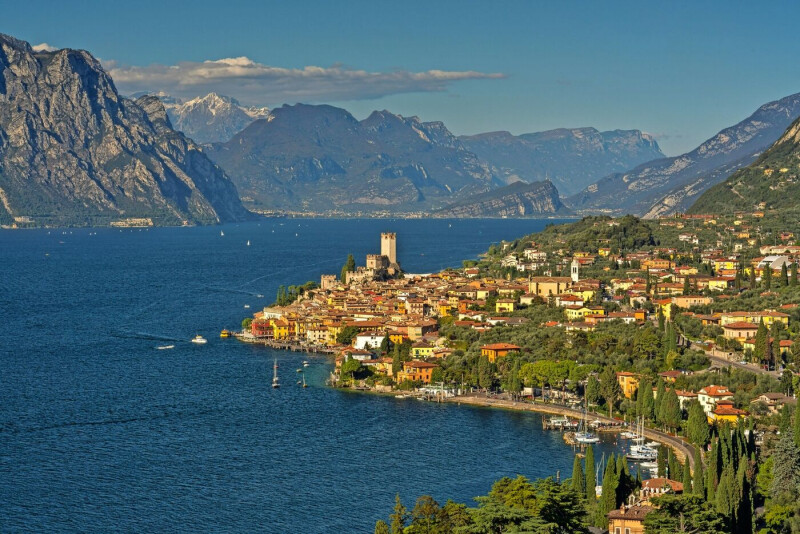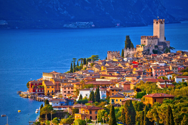 An den Ufern des Gardasees gedeihen Oliven, Zedern, Palmen, Mittelmeer-Zypressen und die schönsten Blumen. Um den See herum verläuft die Gardesana, eine Uferstraße, welche die meisten Orte miteinander verbindet. Jeder dieser Orte ist mit seinen pastellfarbenen Häusern, den ziegelroten Dächern und Kirchen auf seine Weise reizvoll. Als „Juwel“ unter ihnen gilt jedoch Malcesine, Ihr Ziel dieser Reise. Hier erhebt sich stolz die Scaliger-Burg mit Goethes Büste und romantische Gassen führen durch die mittelalterlich anmutende Altstadt. Wie aus dem Bilderbuch wirken die alten Gemäuer mit den verzierten Balkonen, die Treppchen und zahlreichen Plätze, auf denen kleine Tische zu Eis und Cappuccino laden. Viele der Wege führen hinab zum romantischen Hafen und zauberhaften Gardasee.