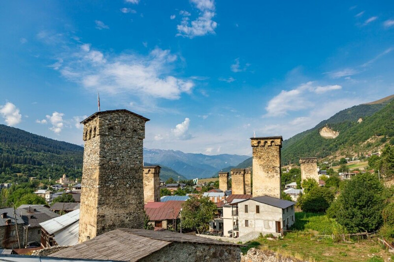 Mestia ist die am meisten besuchte Stadt Swanetiens. Markant ist die Silhouette der zahlreichen Wehrtürme vor der Kulisse der bis zu 5.000 m hohen Berggipfel. Diese oft im Familienbesitz befindlichen Türme dienten u.a. als Spähturm, Vorratslager und Versteck, und in Kriegszeiten auch als Wohnraum. Einige gut erhaltene Türme sind auch öffentlich zugänglich, über hölzerne Leitern kann man im Inneren bis zur obersten Plattform hinaufsteigen. Nach der Besichtigung der Stadt können Sie noch eine kleine Wanderung unternehmen, bei der Sie in die Abgeschiedenheit dieser einzigartigen Gebirgslandschaft eintauchen.