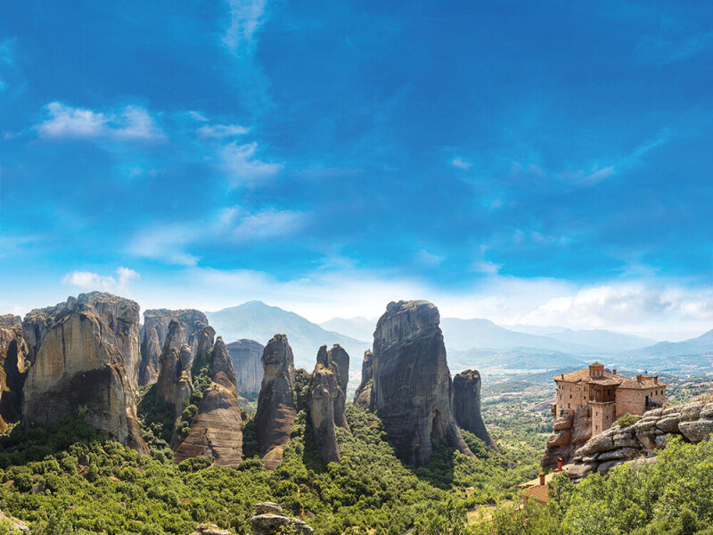 Besuch der weltberühmten, auf Felsen erbauten Metéora-Klöster. Besichtigung eines Klosters und Weiterfahrt nach Vrahati am Golf von Korinth. (ca. 400 km)