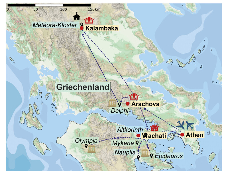 Delphi - Metéora-Kloster - Mykene - Nauplia - Epidauros - Athen - Olympia - Kanal von Korinth