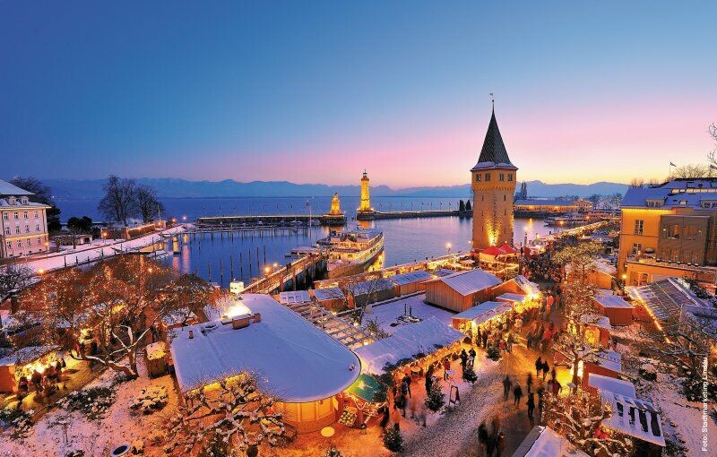Die Lindauer Hafenweihnacht beschert mit ihrer einzigartigen, festlichen Atmosphäre eine unvergessliche Adventszeit. Zahlreiche liebevoll geschmückte Marktstände versüßen vor der Kulisse des Bodensees die Wartezeit auf das große Fest. Lassen Sie sich vom Flair der historischen Inselstadt Lindau mit zahlreichen Sehenswürdigkeiten, engen Gässchen und originellen Brunnen verzaubern. Genießen Sie die besondere Atmosphäre der weihnachtlich beleuchteten Stadt.
