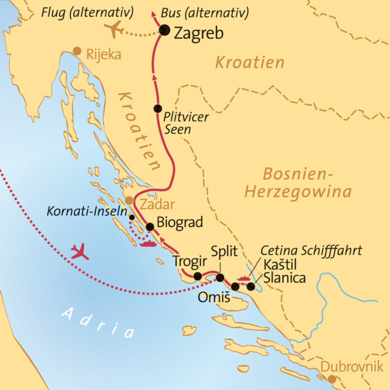 Erleben Sie die schönsten Orte in Dalmatien mit Split, Trogir, Kornati Inseln und Zagreb