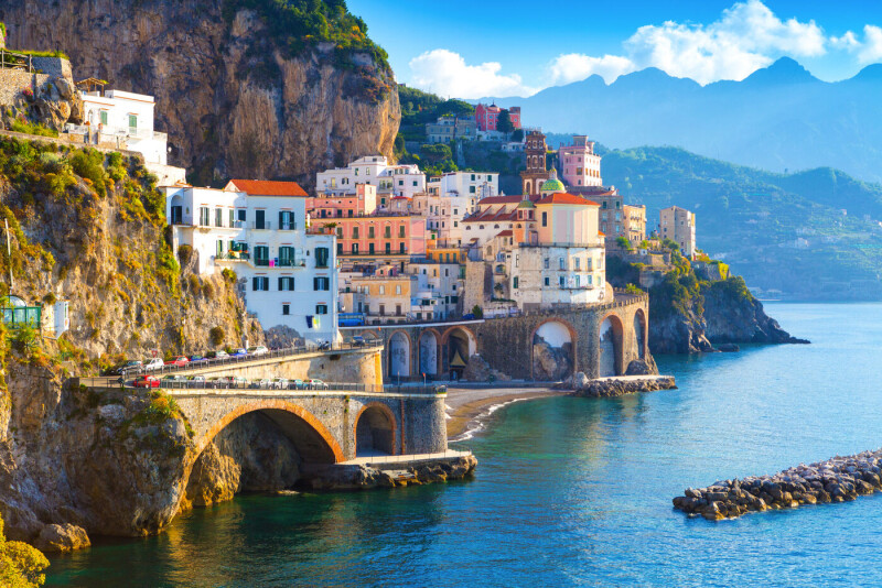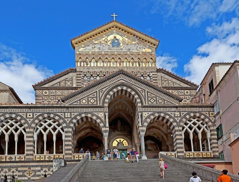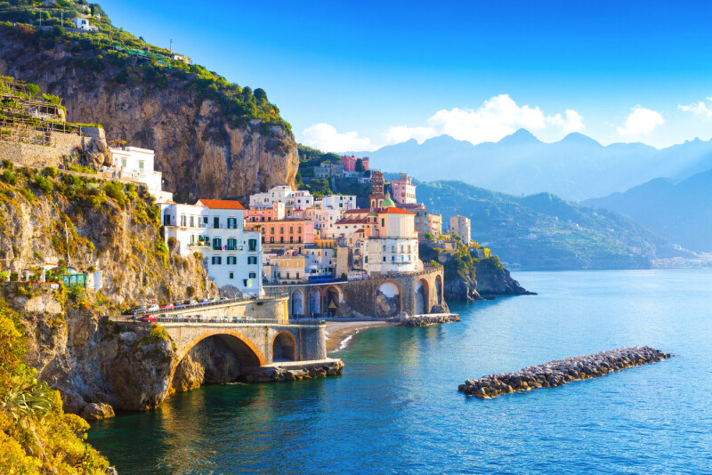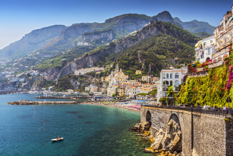 Heute erleben Sie eine imposante Rundfahrt entlang der schönsten Küste der Welt – der Amalfitana. Diese führt Sie entlang eines herrlichen Panoramas, vorbei an Positano, in den pittoresken Ort Amalfi . Jedes Dorf an diesem 40 km langen Küstenabschnitt hat seine eigene Geschichte. Mythen und Legenden ranken sich um die Schwalbennester an den steilen Felsen.