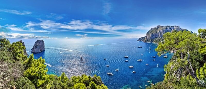Heute sind Sie hier auf Italiens schönster Insel zu Gast. Die 10 km² große Insel Capri erhebt sich mit dem Monte Solaro bis auf eine Höhe von 589 Metern. Der malerische Hafen Marina Grande nimmt Sie nach Ihrer Schiffsüberfahrt in Empfang. Mit dem Minibus beginnt zunächst die Auffahrt nach Anacapri. Der romantische kleine Ort mit den engen Gassen, umrahmt von weißen Häusern, ist von zauberhaftem Flair. Danach besuchen Sie die Inselhauptstadt Capri. Traumhafte Eindrücke bieten die üppigen Gärten des Augustus, die imposante Villa San Michele und der berühmte Faroglioni-Felsen. Am späten Nachmittag kehren Sie auf das Festland zurück.