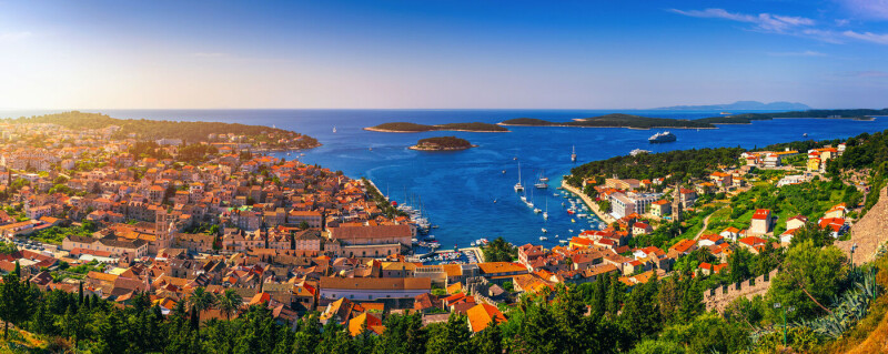 Insel Hvar: Nach dem Frühstücksbuffet fahren wir entlang der Makarska-Riviera über Makarska nach Drvenik. Hier setzen wir mit der Fähre über nach Sucuraj auf der Insel Hvar. Die Hügel der dalmatinischen Insel sind während der Blütezeit vom wilden Lavendel blau gefärbt. Hvar reizt und begeistert mit seiner Schönheit, den Düften des Meeres und der aromatischen Gewächse wie Lavendel oder wilder Rosmarin. Auch der Weinanbau gewinnt wieder an Bedeutung. Hvar ist seit Jahren Treffpunkt des europäischen Jetsets. Wunderschöne, naturbelassene Buchten und nicht zuletzt die historische Altstadt von Hvar verleihen der sonnenreichen Insel ein einzigartiges Ambiente. Wir durchqueren die Insel von Ost nach West und machen Station in der historischen Altstadt. Am späten Nachmittag setzen wir mit der Fähre wieder von Stari Grad über nach Split. Abendessen und Übernachtung in unserem Hotel.