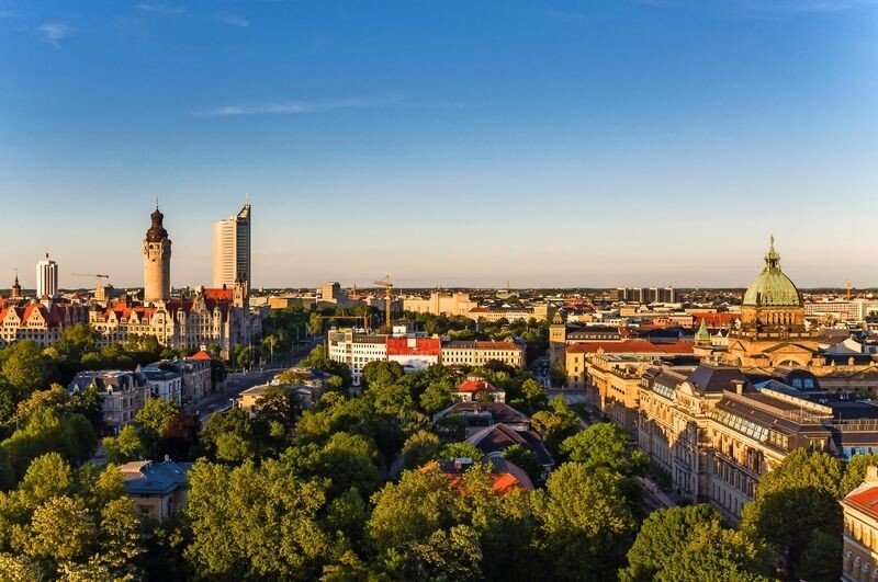 - Panorama-Skyline von Leipzig mit Rathaus und High Court bei Sonnenuntergang, Deutschland © Jakob Fischer - stock.adobe.com