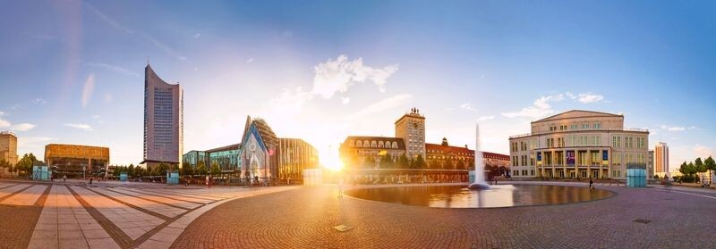 - Panorama zum Sonnenuntergang auf dem Leipziger Augustusplatz. © FSEID - Fotolia