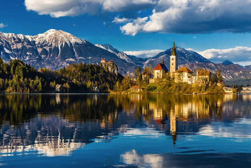 Mit einem Zwischenstopp am See von Bled führt die Route nach Oberbayern.