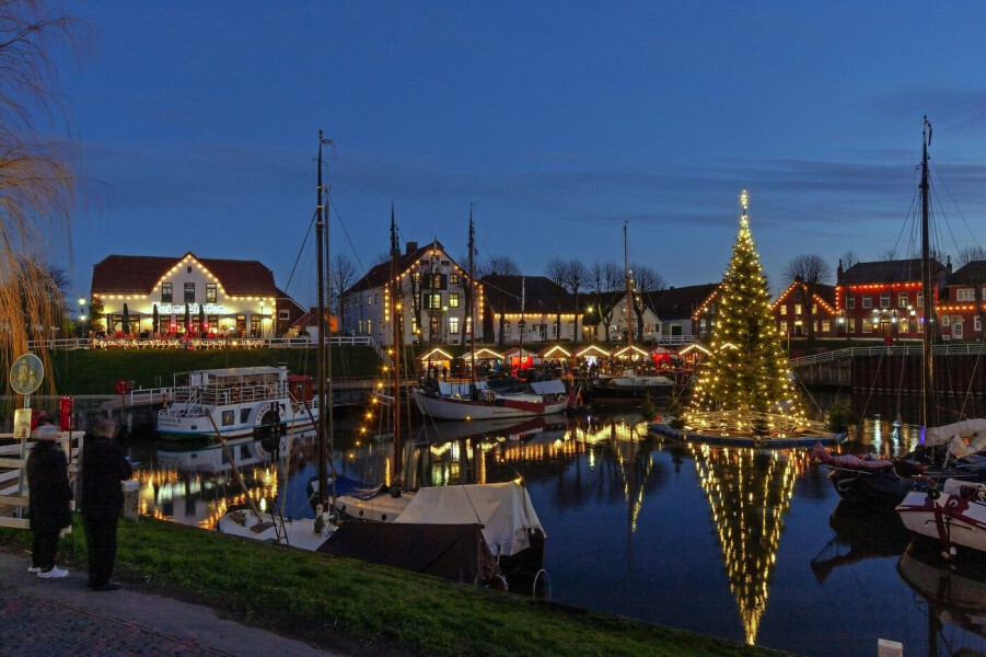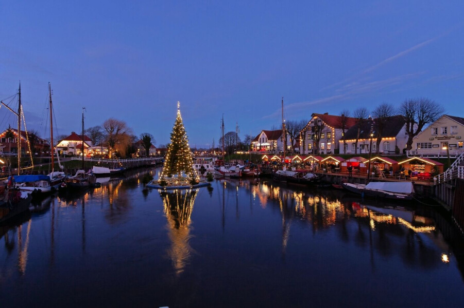 Der Weihnachtsmarkt in Leer, auch bekannt als "Weihnachtsstadt Leer", ist ein beliebter Anziehungspunkt in Ostfriesland zur Adventszeit. Er lockt mit einer Vielzahl von Attraktionen und einem besonderen Ambiente. Der Markt erstreckt sich über den historischen Rathausplatz und die angrenzenden Gassen, was eine einzigartige Atmosphäre schafft. An den zahlreichen Ständen gibt es ein breites Sortiment an weihnachtlichen Artikeln, darunter Kunsthandwerk, Schmuck, Spielzeug und Leckereien. Besonders sehenswerit ist der "schwimmenden Weihnachtsbaum" auf dem Hafenbecken. Genießen Sie den letzten Glühwein, bevor Sie die Heimreise antreten.