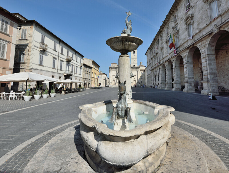Viele Jahrhunderte vor der Ankunft der Römer hatten die Einwohner von Ascoli Piceno bereits ihre hohe Kultur entwickelt. Die Stadt ist ein Juwel. Das beginnt schon beim Stein, der beim Bau der Häuser verwendet worden ist. Überall sonst in den Marken herrschen die rötlichen Backsteine vor. Ascoli präsentiert sich mit dem eleganten grau-weißen Travertinstein. Ein prächtiges Farbenspiel ist es, wenn die untergehende Sonne die Kirchen und Paläste in sanftem und mildem Licht erstrahlen lässt. Wir laden Sie zu einem „Anisetta“ (typischer Likör) und Ascolana-Oliven ein.