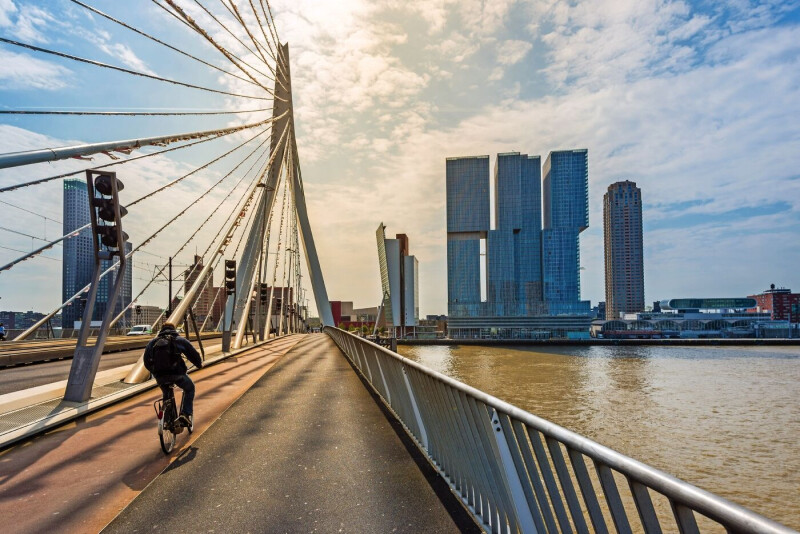Die moderne Metropole am Fluss Maas, beeindruckt mit ihrer Architektur, welche eine eindrucksvolle Mischung aus historischen Gebäuden und futuristischen Wolkenkratzern darstellt. Besuchen Sie den beeindruckenden Hafen, einen der größten der Welt, und erkunden Sie die lebendige Kunst- und Kulturszene der Stadt. Vergessen Sie nicht, die ikonischen Kubus-Häuser oder die spektakuläre Markthalle zu besichtigen. Für Kulturhungrige ist ein Besuch im Depot Boijmans Van Beuningen sehr zu empfehlen. Nur wenige Kilometer von Rotterdam entfernt finden Sie mit dem majestätischen Den Haag und dem mondänen Seebad Scheveningen ein ganz anderes Bild der Niederlande.