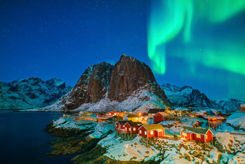 Heute fahren Sie von Narvik entlang des Ofotfjords in Richtung Lofoten. Schon unterwegs bieten sich erste Ausblicke auf die schneebedeckte, majestätische "Lofot-Wand" und die Fischkutter, die im Winter den Dorsch "Skrei" fangen. Am Nachmittag können Sie die Insel in der bezaubernden Winterbeleuchtung besichtigen und die malerischen Fischerdörfer mit traditionellen "Rorbuer" bewundern. Eine Übernachtung im Raum Svolvaer.
