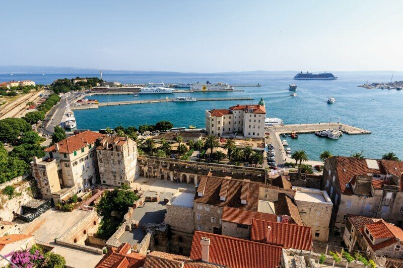 Ein letztes Mal genießen wir das Schwimmen direkt vom Schiff aus. Zurück in Split wandeln wir auf den Spuren des römischen Kaisers Diokletian in dessen Palast, mit 40.000 m² eher als riesige Festung zu bezeichnen! Mauern, Säulen, Türme, Plätze mit Live-Musik, die quirlige Uferpromenade, zahlreiche Geschäfte – Split ist wahrlich beeindruckend!