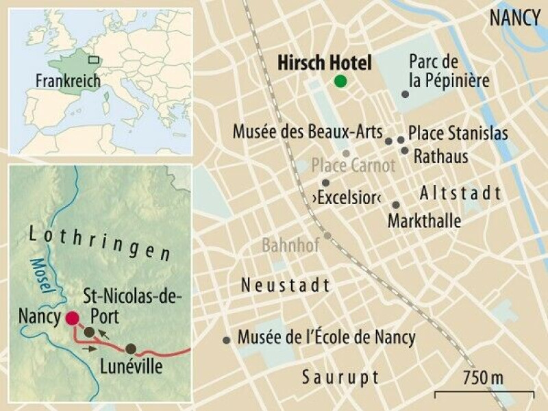 Die Partnerschaft zwischen Karlsruhe und Nancy ist eine der ältesten deutsch-französischen Städtepartnerschaften und geht auf einen Schüleraustausch 1955 zurück. Zu einem friedlichen Europa beizutragen war das Ziel – auch das von Hirsch Reisen, dessen Geschichte in der Nachkriegszeit mit Reisen über den Rhein nach Straßburg, Nancy und Paris begann. Wir erleben die glanzvolle Barockstadt, ihre JugendstilSammlungen, das Schloss Lunéville und anregende persönliche Begegnungen.