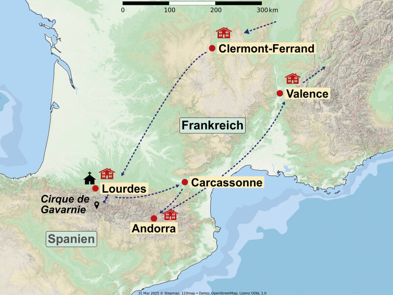 Zentralfrankreich - Lourdes - Carcassonne - Fürstentum Andorra - Golf von Lion