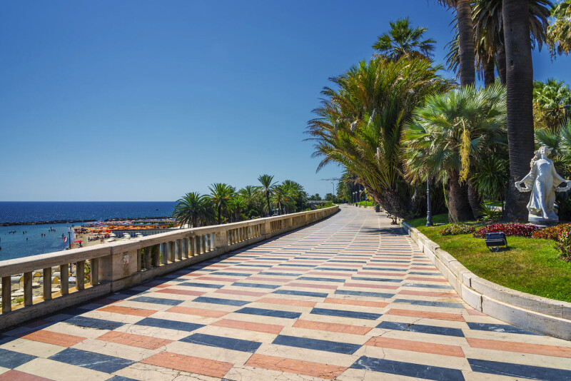 Küstenradweg nach San Remo und Dolceacqua: Wir starten ab Hotel und radeln am Meer entlang der alten Eisenbahnlinie nach San Remo. Durch die Galerie mit dem Mailand-Sanremo Museum erreichen wir Ospedaletti und von hier das schönes Bordighera. Von hier aus fahren wir auf der Staatsstraße in Richtung der antiken „Via Romana“, die uns nach Camporosso Mare führt. Von hier aus betritt man das Nervia Tal entlang des Fluss Nervia bis nach Camporosso Alto. Der Weg führt uns zum spektakulären Dorf Dolceacqua. Nach der Besichtigung des Dorfes genießen wir einen leckeren Imbiss auf einem rustikalen Bauernhof. Rückfahrt zum Hotel mit dem Bus.