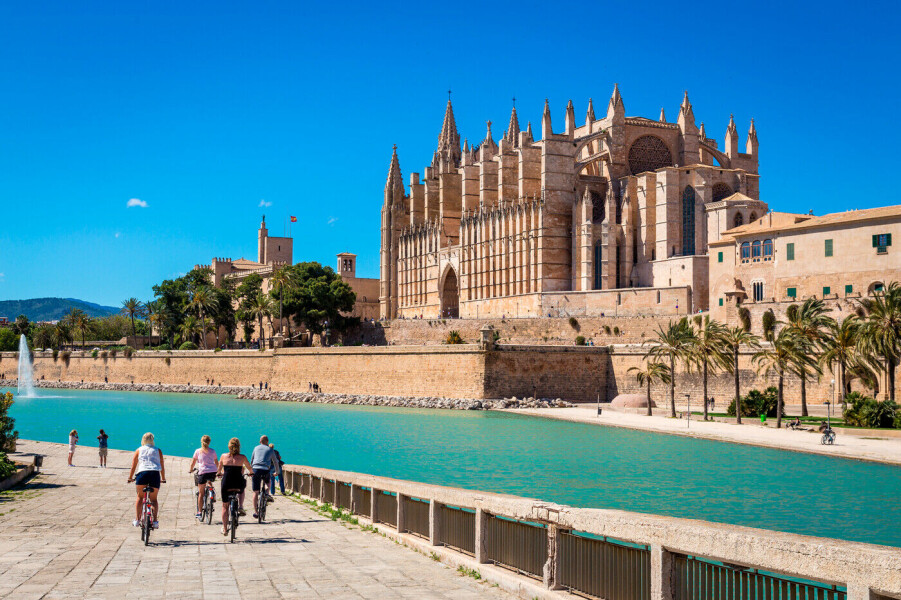 Sie starten oberhalb von Arenal, genießen die Aussicht auf die Bucht von Palma und fahren entlang der Playa de Palma bis ins Zentrum von Palma. Dort bietet sich ein Spaziergang durch die Altstadt von Palma an. Anschließend geht es der Küste entlang zurück nach Peguera.