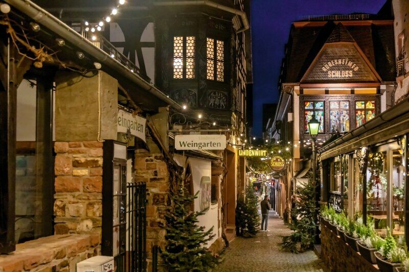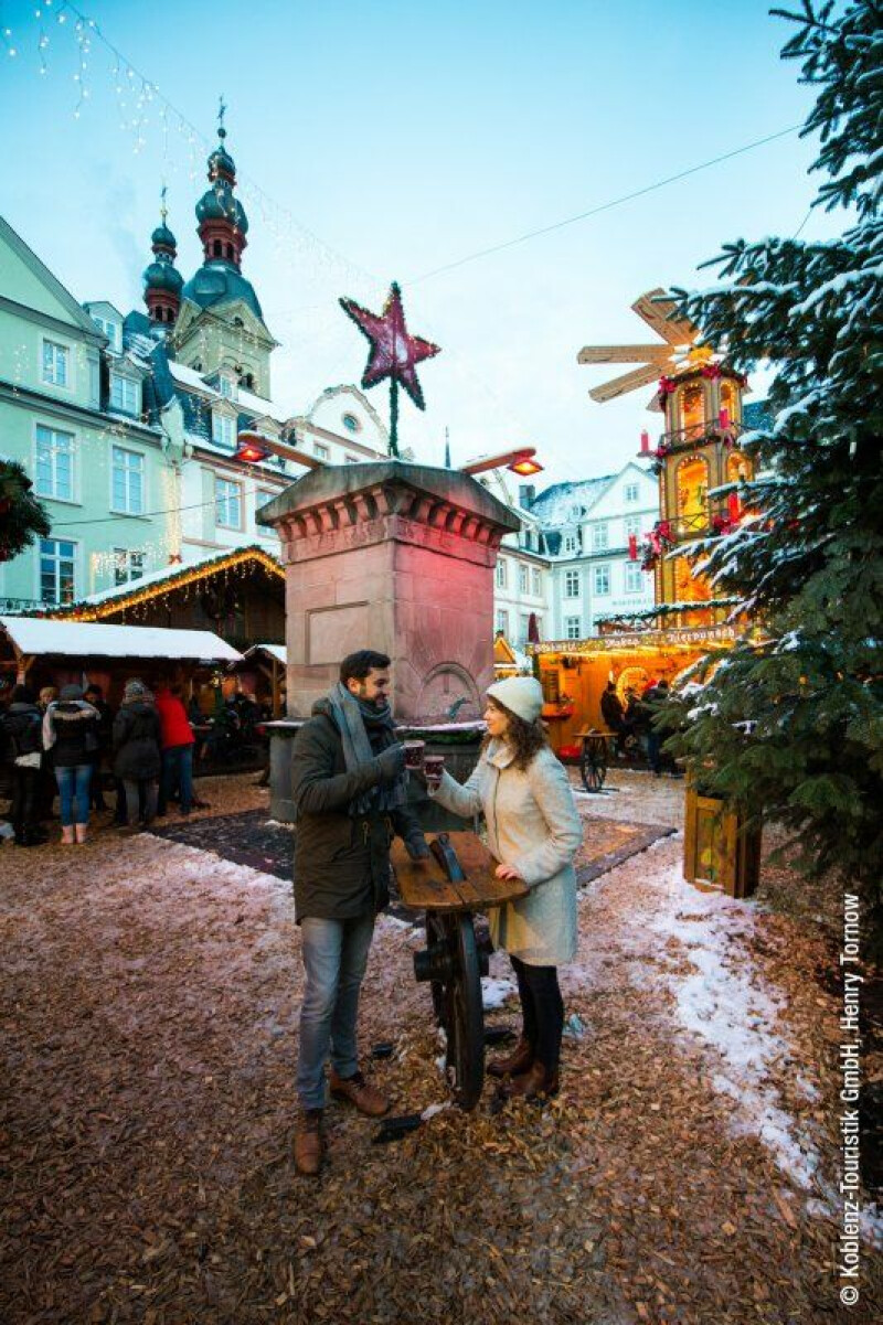Besuchen Sie Siegburg mit seinem mittelalterlichen Weihnachtsmarkt, schlendern Sie durch die romantischen Gassen von Rüdesheim und genießen die festliche Atmosphäre in Koblenz. Lassen Sie sich von der winterlichen Landschaft und den köstlichen regionalen Spezialitäten zwischen Rhein und Mosel verzaubern.