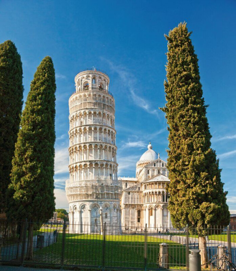 Die historische Altstadt von Lucca ist ein mittelalterliches Kleinod mit seiner Stadtbefestigung, großartigen Kirchen, Plätzen und romantischen Gassen. Pisa ist weltberühmt für seinen Dom, dem Baptisterium und dem Schiefen Turm, einem architektonischen Meisterwerk in reinstem weißem Marmor.