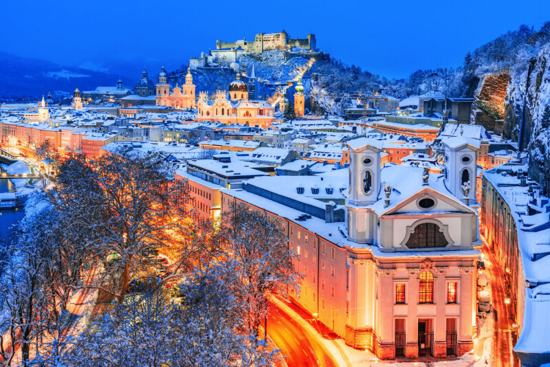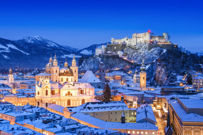 Die berühmte Geburtsstadt Mozarts liegt im schönen Salzburger Land umgeben von Mönchsberg, Kapuzinerberg und Festungsberg. Genießen Sie die weihnachtliche Atmosphäre und lassen Sie sich durch die typischen altsalzburgischen engen Sträßchen führen, die malerisch von schmalen Häusern eingerahmt werden. Besuchen Sie den Salzburger Weihnachtsmarkt dessen Ursprung auf das späte 15. Jahrhundert zurückgeht. Denn schon damals gab es im historischen Zentrum auf dem Domplatz einen Adventmarkt, der später „Nikolaimarkt“ genannt wurde.