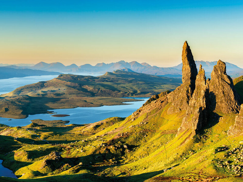Morgens kurze Fährüberfahrt von Mallaig nach Armadale, auf die Isle of Skye, eine der malerischsten und größten schottischen Inseln. Bei einer Fahrt über die Insel lernen Sie die extrem bizarre Gebirgswelt aus dunklem Basalt kennen. Auf landschaftlich reizvoller Strecke Rückfahrt nach Fort William.