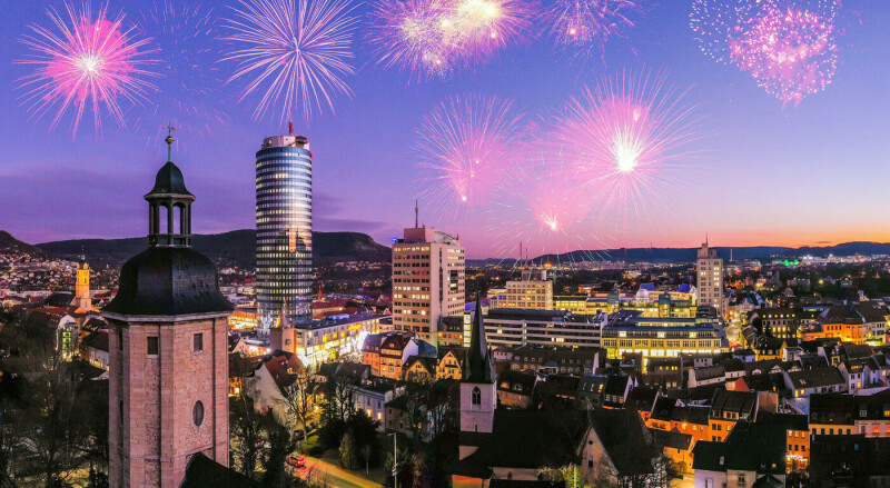 Reizvolle Natur, Kulturschätze und die richtige Dosis Entspannung für den gelungenen Jahresausklang liegen nirgendwo näher beieinander als im Herzen von Thüringen. Jenas Lage im malerischen Saaletal macht das Silvesterfeuerwerk zu einem besonderen Erlebnis. Die Erkundung der kleinen Gassen der Altstadt mit ihren Baudenkmälern und kulturhistorisch interessanten Sehenswürdigkeiten ist genauso lohnenswert wie ein Besuch im ältesten mit modernster Technik ausgerüsteten Planetarium der Welt.